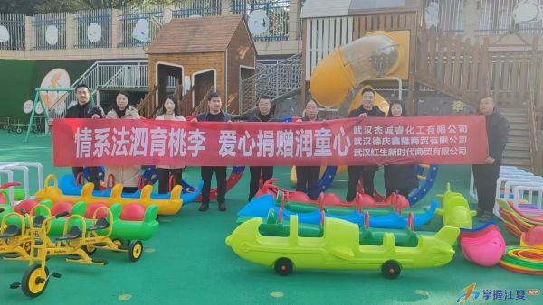 12月25日,武汉杰诚睿化工有限公司、武汉德庆鑫隆商贸有限公司、武汉红生新时代商贸有限公司联合向江夏区法泗中心幼儿园捐赠了一批户外玩教具,以改善幼儿园办学条件,为幼儿创造更安全、丰富的成长环境。此次公益行动既体现了企业对社会责任的积极担当,也赢得了当地群众的广泛赞誉。