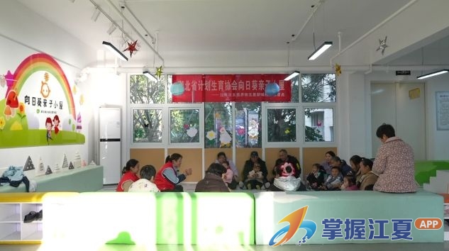 在五里界街五里新城社区,社区内的“向日葵亲子小屋”正在开展早教活动,欢快的儿歌声中,多位家长带着孩子参与互动游戏。