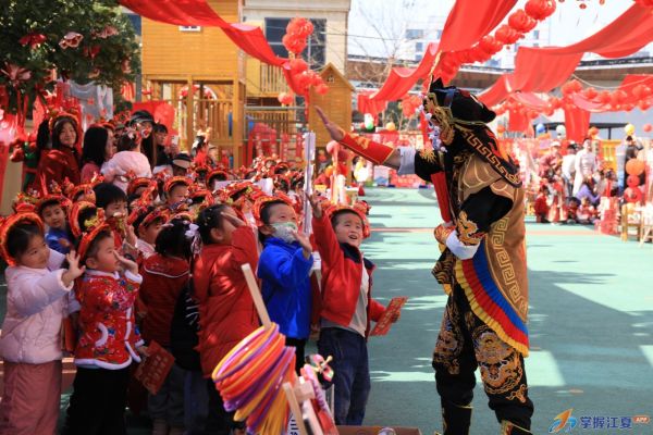 当日幼儿园张灯结彩,下午1时活动启幕,“财神爷”引领身着红装的孩子们入场。大班幼儿的舞蹈《欢乐中国年》、精彩的舞狮表演与川剧变脸表演,迅速点燃年味。