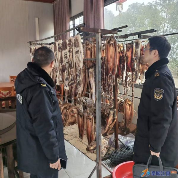 寒冬时节,腊味飘香。随着春节临近,江夏区五里界街道的农家乐、农庄纷纷挂起腊鱼、腊肉、腊肠、腊鸡、腊鸭等特色腊货,吸引了众多市民和游客前来采购。为确保节日期间食品安全,五里界市场监督管理所对辖区腊味制品生产经营单位开展专项监督检查,全力守护群众“舌尖上的年味”。