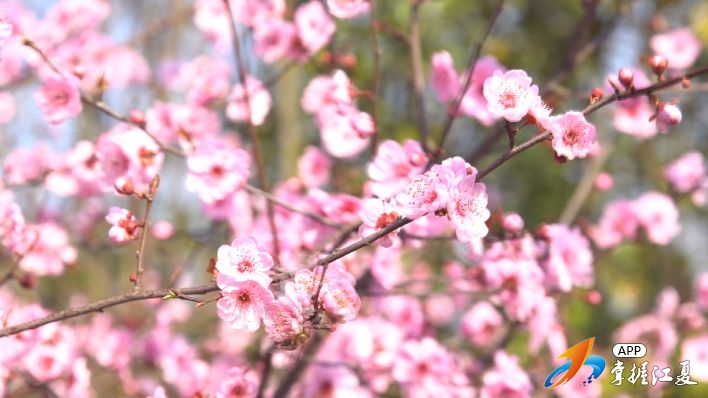一树树粉红的、深红的梅花